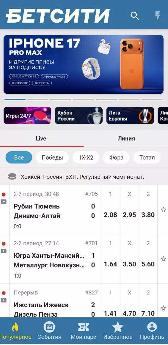 Скачать мобильную версию Бетсити на Андроид с официального сайта