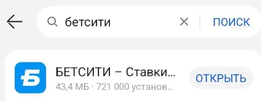 Для скачивания необходимо посетить магазин, в поиске ввести “Бетсити”, тапнуть “Установить” и дождаться загрузки.