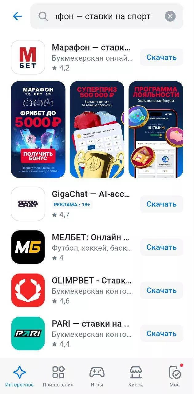 Локальная версия Marathonbet для России не размещена в Google Play из-за ограничений региона. Международные публикации существуют, но не обеспечивают доступ к российскому рынку.