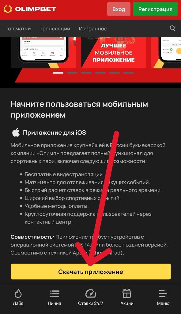 На сайте OLIMPBET необходимо нажать кнопку «Скачать приложение» или отсканировать QR-код». В App Store автоматически откроется официальная страница БК Олимп с актуальной версией для iOS.