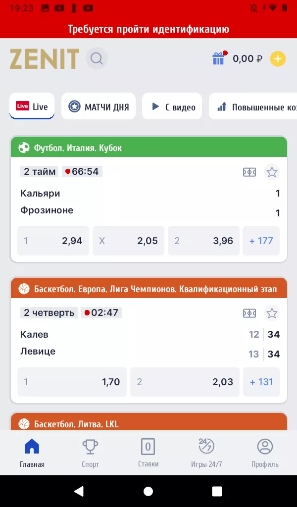 После регистрации завершите идентификацию. Это обязательный шаг - он подтверждает вашу личность и гарантирует, что все операции с деньгами будут безопасными и легальными. После идентификации вам будет доступен приветственный бонус Зенит.