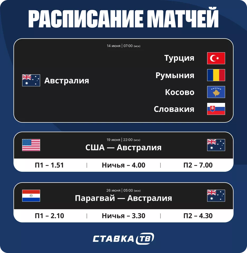Ставки на сборную Австралии на ЧМ-2026