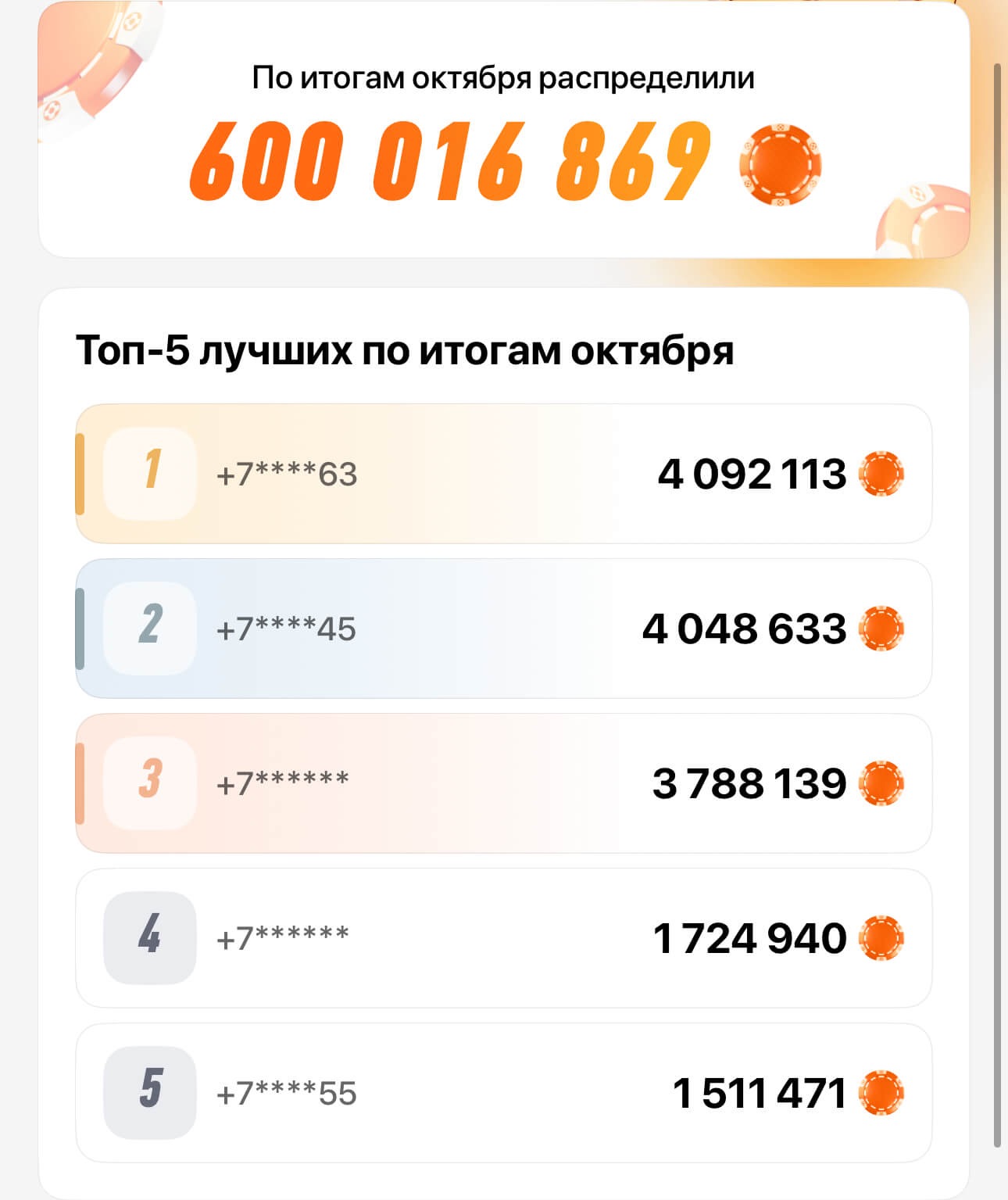 Если бы была возможность, то порекомендовал бы Винлайн как-то подробнее раскрыть аспект начисления или рамки бонуса. А итоговый лидерборд — крутая вещь, когда видишь такие цифры понимаешь, что твои 47 192 — капля в море.