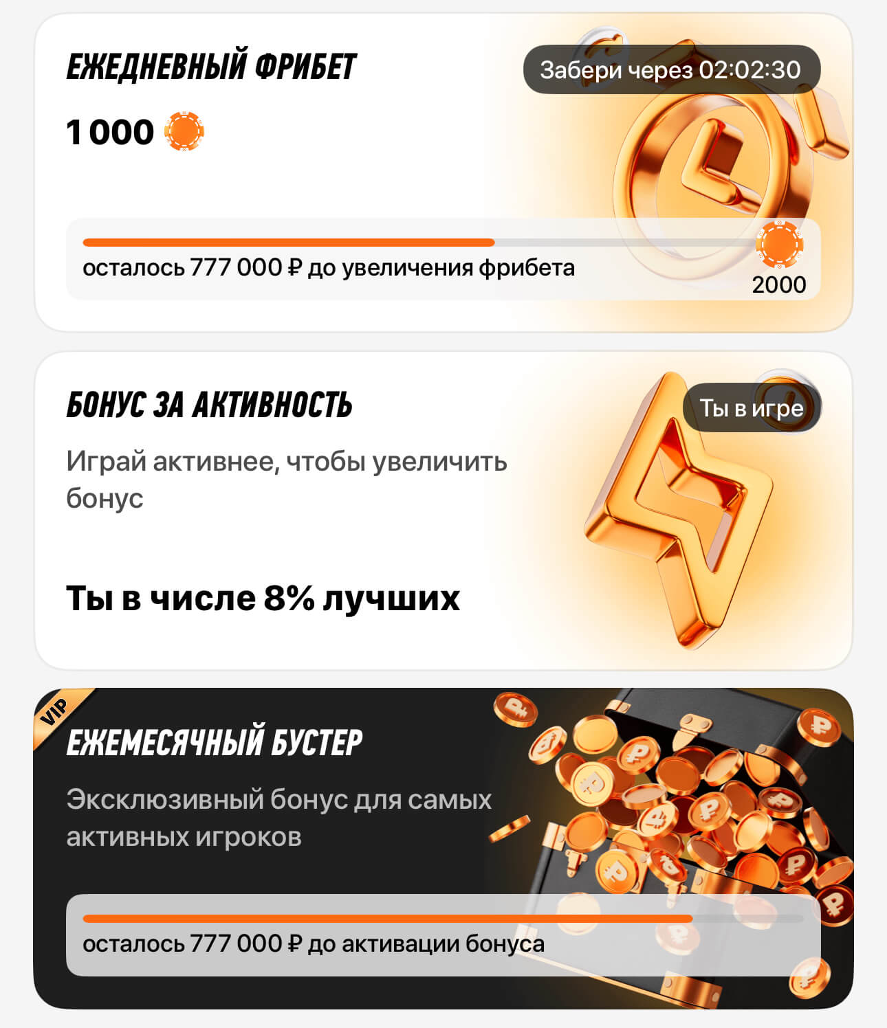 - ежемесячный бустер — осталось три семерки и три нуля (777 000 рублей).