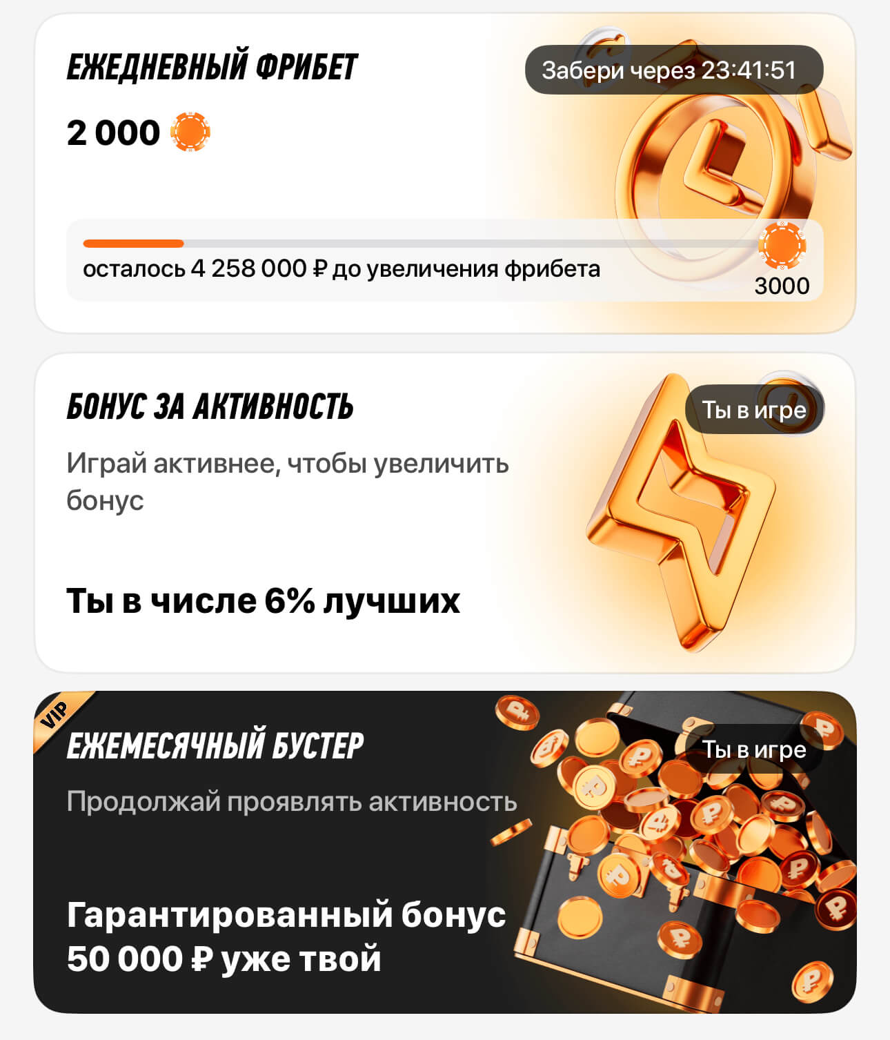 - 3 фрибета по 2000 рублей