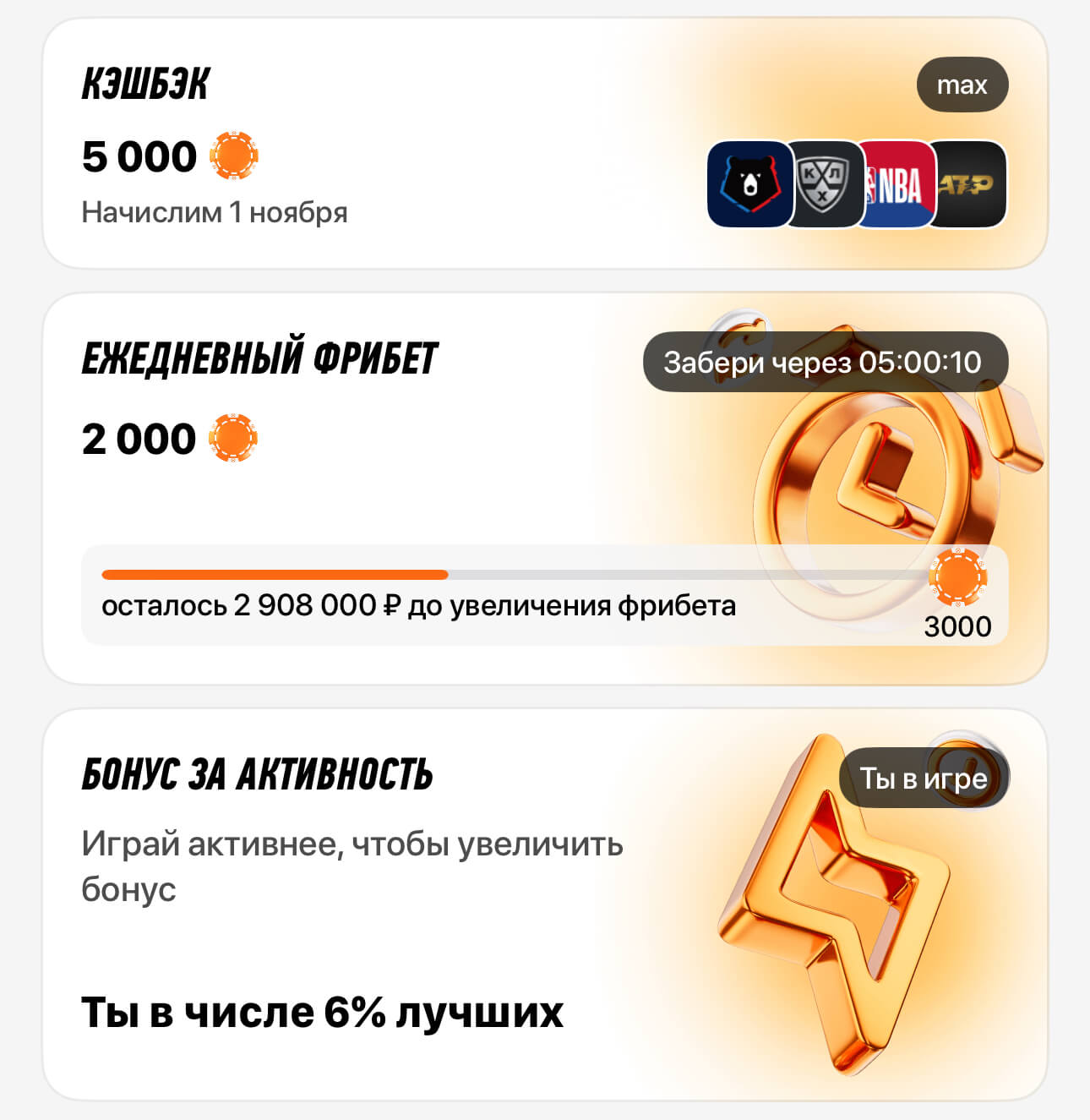 Из приятного: уже получено 3 фрибета по 2000 рублей, а через 5 часов будет начислен четвертый.