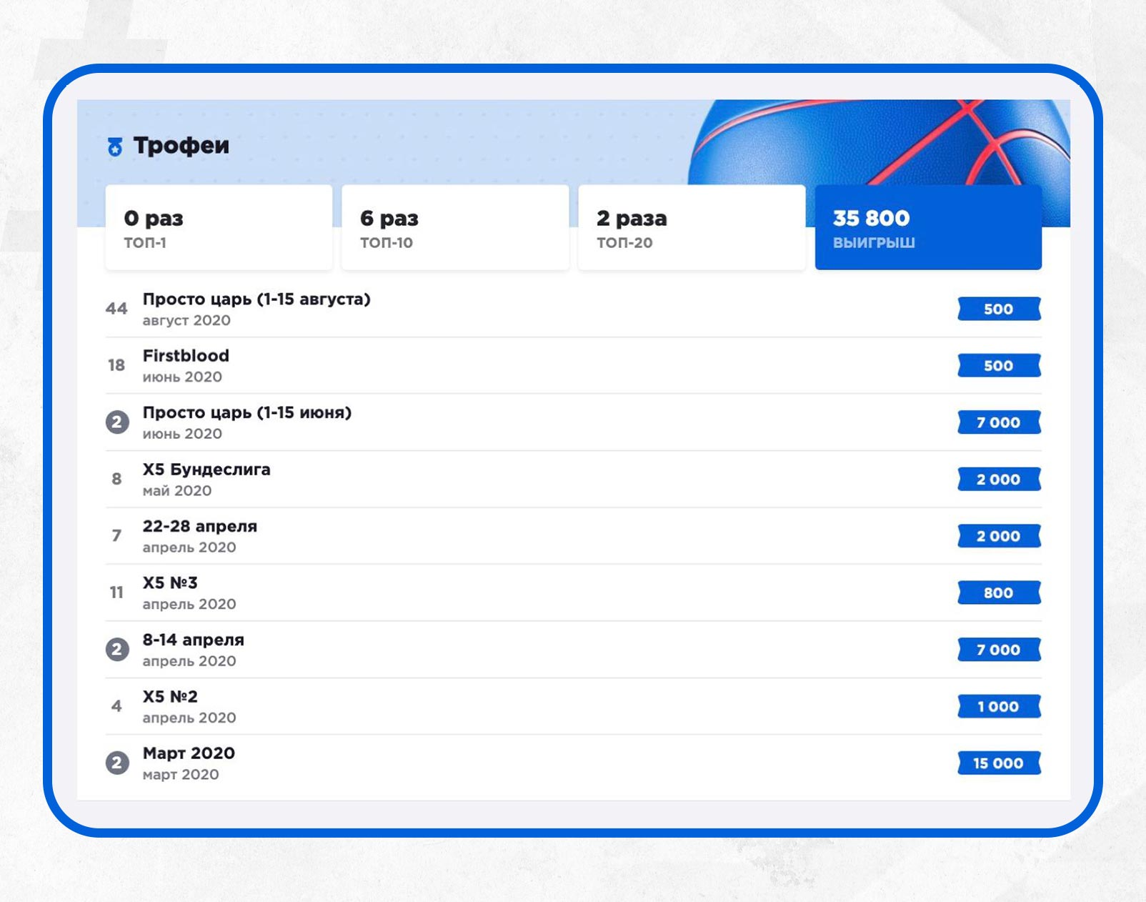 Мы начали от старых турниров к новым, поэтому в скором времени такая доска почета появится в каждом профиле, чей владелец хотя бы раз занимал место в топ-20 любого конкурса прогнозов.