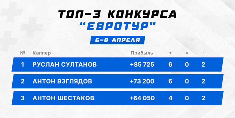 Хотя к такому результату был очень близок фанат ЦСКА с ником "Fanat CSKA". Он действовал очень аккуратно на протяжении всей конкурсной программы и на серьезный риск пошел только во встрече "Бавария" — “ПСЖ”. Здесь его прогноз на победу французского клуба за 3.64 сыграл, а вот лондонский "Арсенал" похоронил кэф 1.55, не сумев удержать победу в матче со "Славией". 7-0-1, 57 750 рублей чистыми и десятая позиция в конкурсе. Но это "Евротур", друзья, за место в десятке призовые здесь очень неплохие!