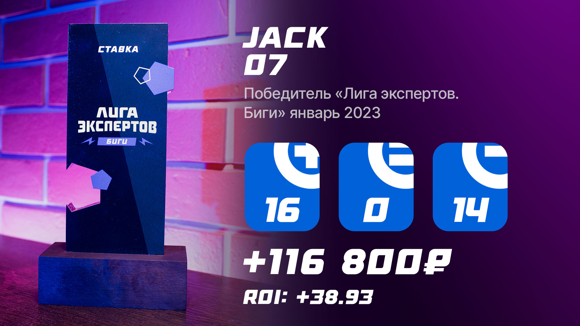 Лучшим в бигах” по итогам января стал Jack 07, в активе которого ROI 38.95%. Год для нашего народного эксперта (а мы напомним, что он прошел длинный путь от простого каппера) начался очень удачно: помимо “золота” в “бигах” он занял еще и второе место в “смоллах”. Но об попозже.