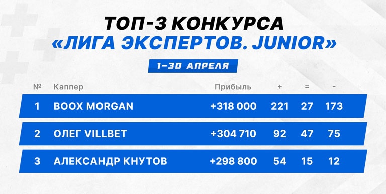 Как и всегда, статистика говорит о чемпионе лучше любых слов: 67% точных прогнозов в апреле, +73 050 в бигах и +218 950 в общем зачете.