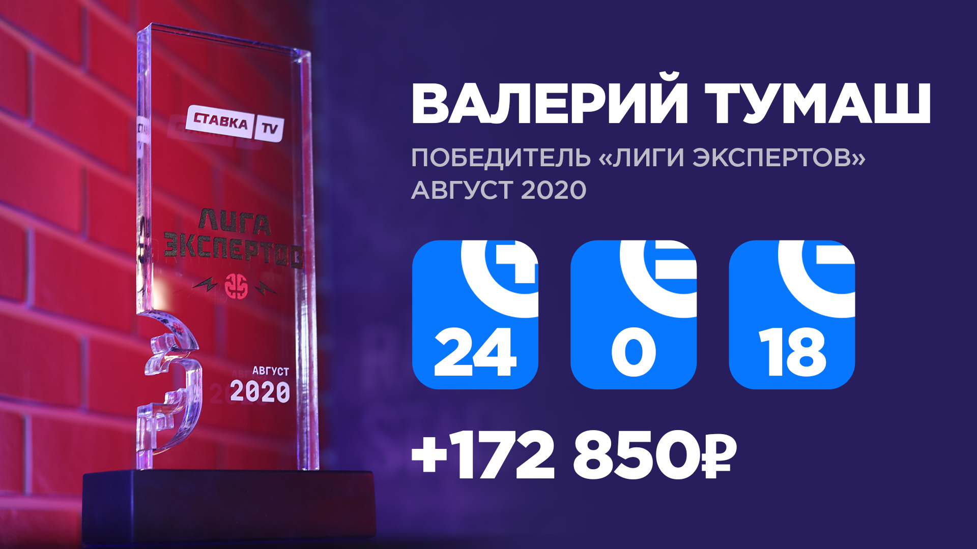 Если вы ставили вместе с Валерием, то заработали в августе 172 850 рублей чистыми. Мы поздравляем вас, мы поздравляем проект "TimeOut" и повторяем: Валерий Тумаш – лучший в августе!