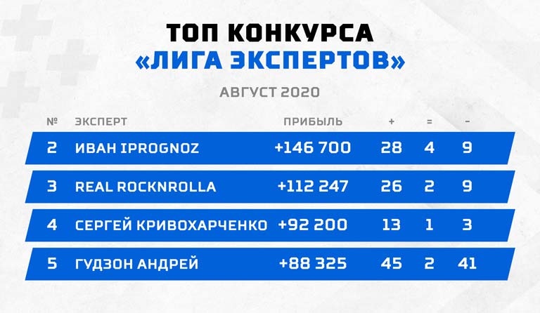 Помимо этого, покинуть "Лигу экспертов" можно было и за низкую активность. Не знаем, как сложится голосование для Бориса Алексеенко, но в сентябре мы точно не увидим еще одного представителя киберспорта – M_V Bets (один прогноз).