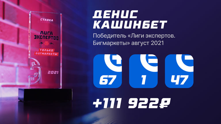 Здесь у нас 100 рублей чистой прибыли, разделившие Сергея ЧК и Евгения Трифонова в борьбе за пятую строчку. Евгений не был активен в августе, но сделал девять точных прогнозов, которые привнесли в его копилку 82 000 рублей. Сергей ЧК, без сомнений, может и должен записать август себе в актив — хорошая точность и попадание в число лучших сразу в двух турнирах!