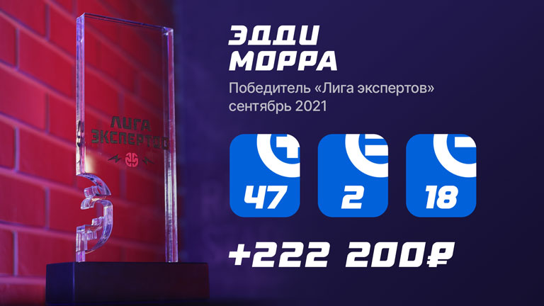 Для Эдди Морры это второй кубок победителя "Лиги экспертов". Кстати, победа пришла к нему ровно через год, ведь свой первый трофей он завоевал еще в сентябре 2020-го года, тогда участвуя со старого аккаунта. О судьбе того профиля рассказывать не будем, просто поздравляем с первым местом!