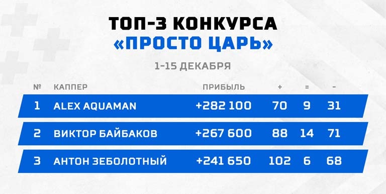 Он показал внушительные цифры по итогам конкурса (352 000 чистыми за 15 дней), но допускал полное дублирование в обоснованиях своих некоторых прогнозов. Это та самая ложка дегтя для чемпиона, которая снизила его конечный результат до 282 100. Помимо первого места и призовых, Alex Aquaman получает предупреждение и возможность потери статуса в дальнейшем. Ругать больше чемпиона не будем, будем поздравлять!