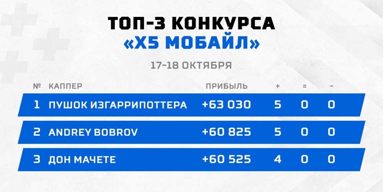 Лишь раз за все время проведения конкурса "Х5 Мобайл" игрокам категории профи удалось одержать три победы кряду. Раз за разом капперы пресекают старания привилегированных собратьев, в очередной раз доказывая конкурентоспособность собственного статуса. Вы, наверняка, догадались, что пришло время подведения итогов. Сегодня говорим не только о традиционном блиц-турнире, но и о конкурсе "Заряжен на РПЛ". Готовы? Поехали!
