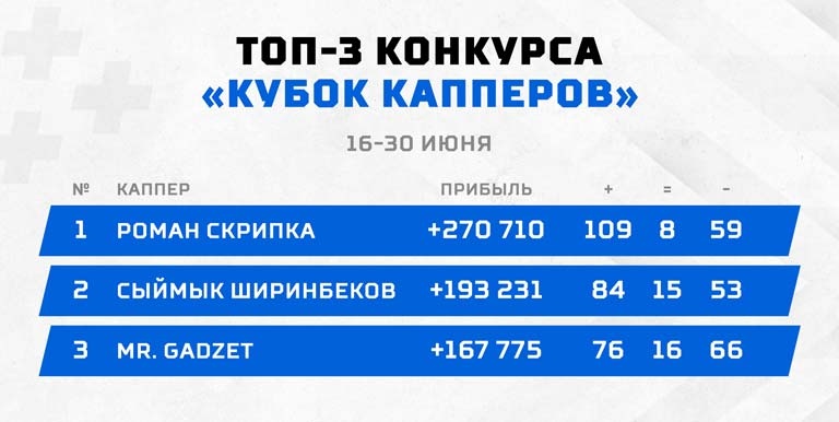 Еще один дубль на счету Сыймыка Ширинбекова. Ему удалось обойти в "Кубке капперов" пользователя Mr.Gadzet и занять вторую позицию. И хотя сам Сыймык добавил в прибыли с 29-го числа, стало это возможным по большей части из-за стремления каппера Mr.Gadzet догнать Романа Скрипку. А ведь победитель предупреждал в комментариях, что такая гонка ничем хорошим для преследователя не закончится. Не послушал, в итоге: просадка в прибыли почти 30 000 за последние два дня и третье место для Mr.Gadzet.