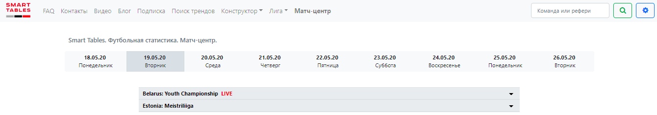 Тейблс – это, конечно, номер один для любителей всевозможных трендов. На них тут серьезный акцент и очень качественная проработка раздела. Один из основных плюсов сайта – возможность выстраивать тренды сразу абсолютно по всем командам из всех лиг, а потом уже самостоятельно разбираться, что тебе из этого надо, а что – нет. Тут же около команд появляются удобные гиперссылки на ближайший матч, если он планируется (особенно актуально будет в ближайшие месяцы).