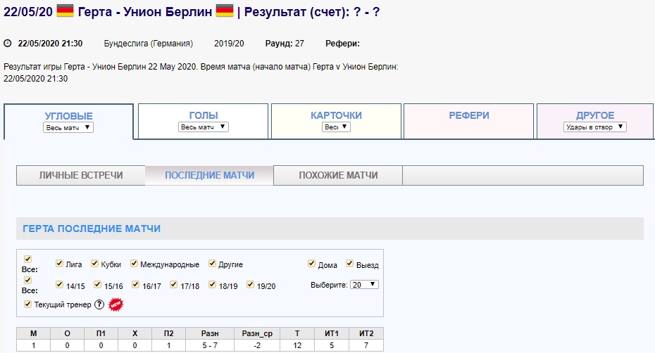 Еще одно недавнее дополнение к функционалу – статистика команд при текущем тренере. Эта функция доступна при переходе к конкретному матчу.