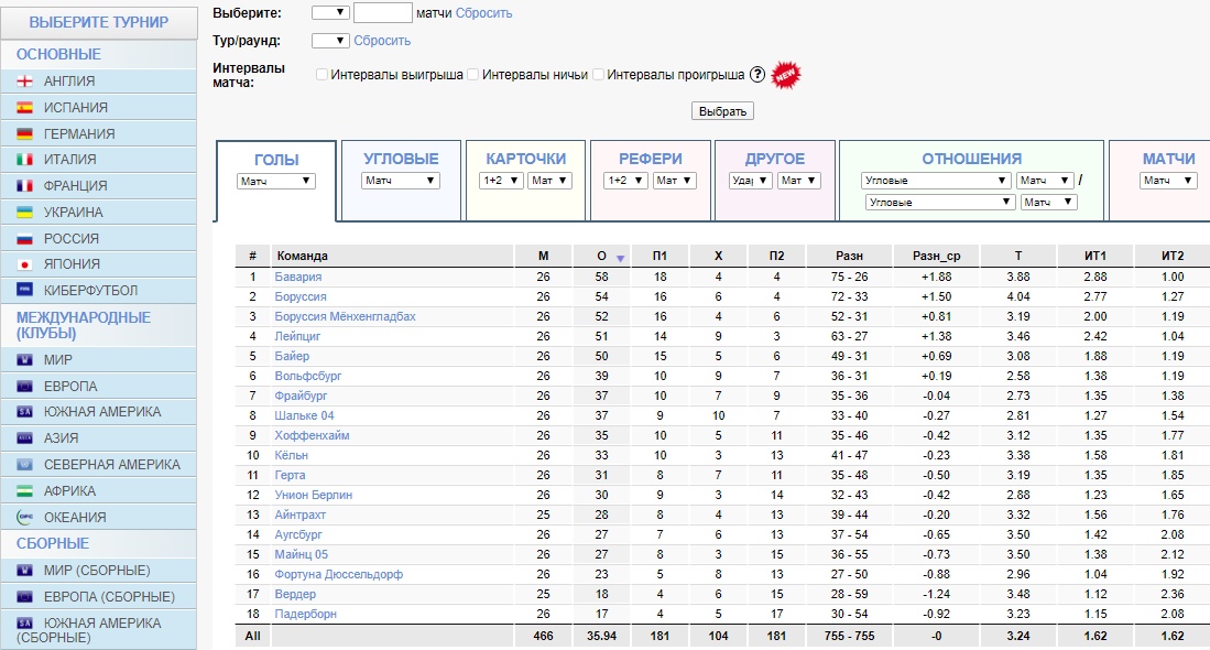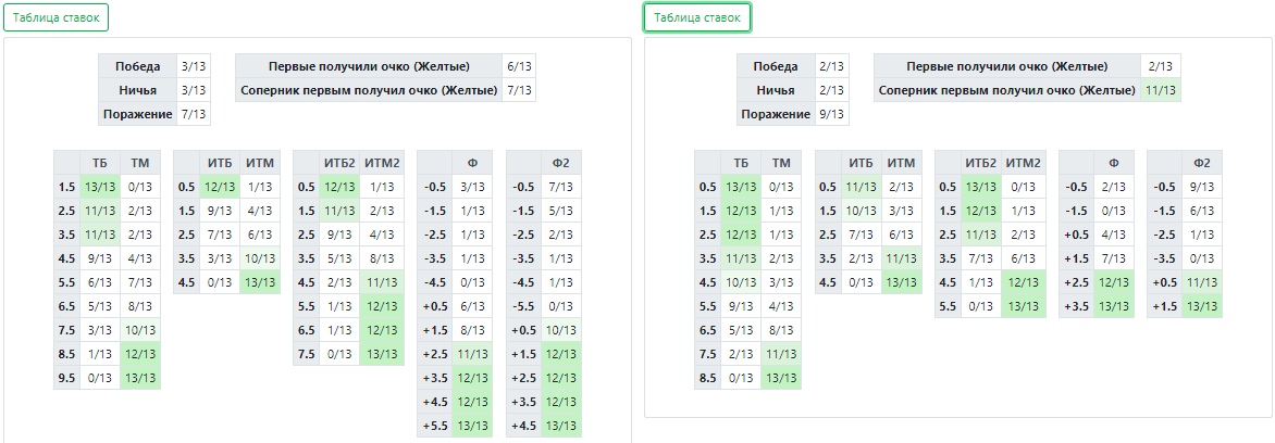 Фото: скриншоты сайтов Corner-Stats и Smart-Tables