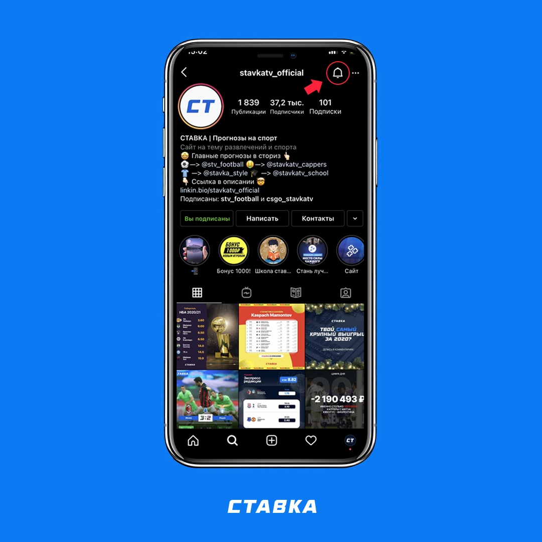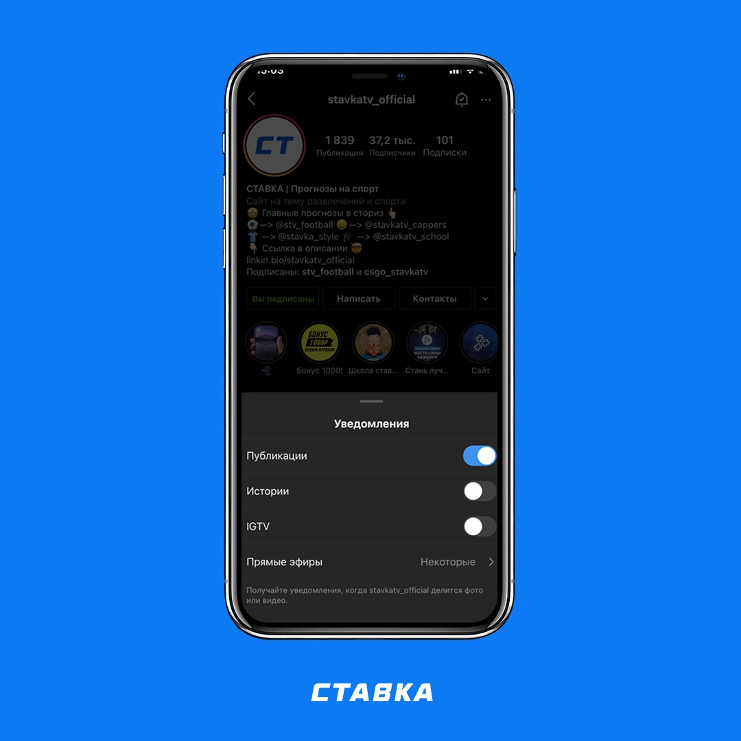 Чтобы облегчить себе жизнь и быть одним из первых капперов, которые увидят матчи для участия в конкурсе и сделают ставки на секретные матчи, самым удобным способом после подписки на каждую соцсеть станет включение уведомлений. Коротко и ясно показываем, как нужно включить уведомления на посты в Instagram и Telegram.
