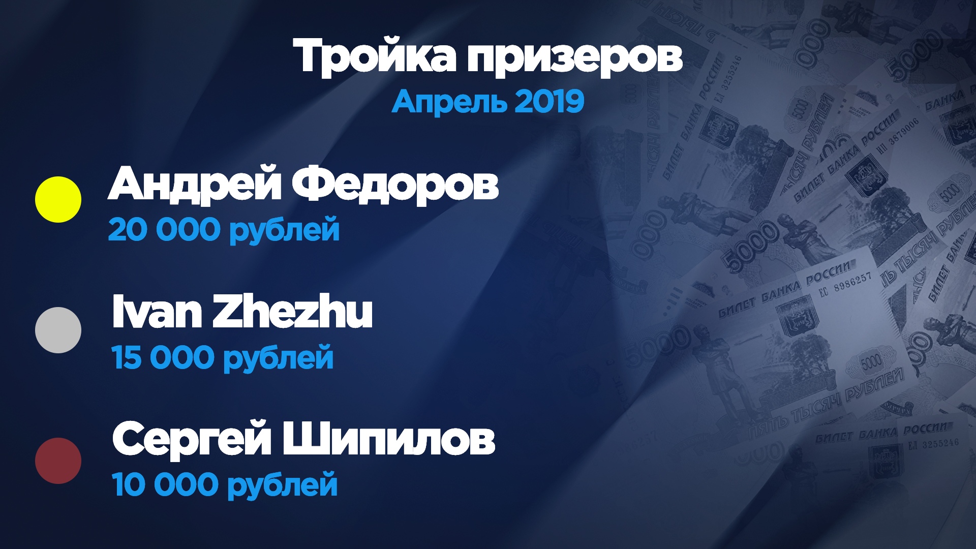 Перед тем как спеть оду нашему апрельскому чемпиону, вновь вспомним про Максима Тарусина. Что поделать, если он и в апреле был хорош? Ничего не нужно делать, просто скажем, что за ним осталось четвертое место, а еще восемь тысяч российских рублей отправились в семейный бюджет.