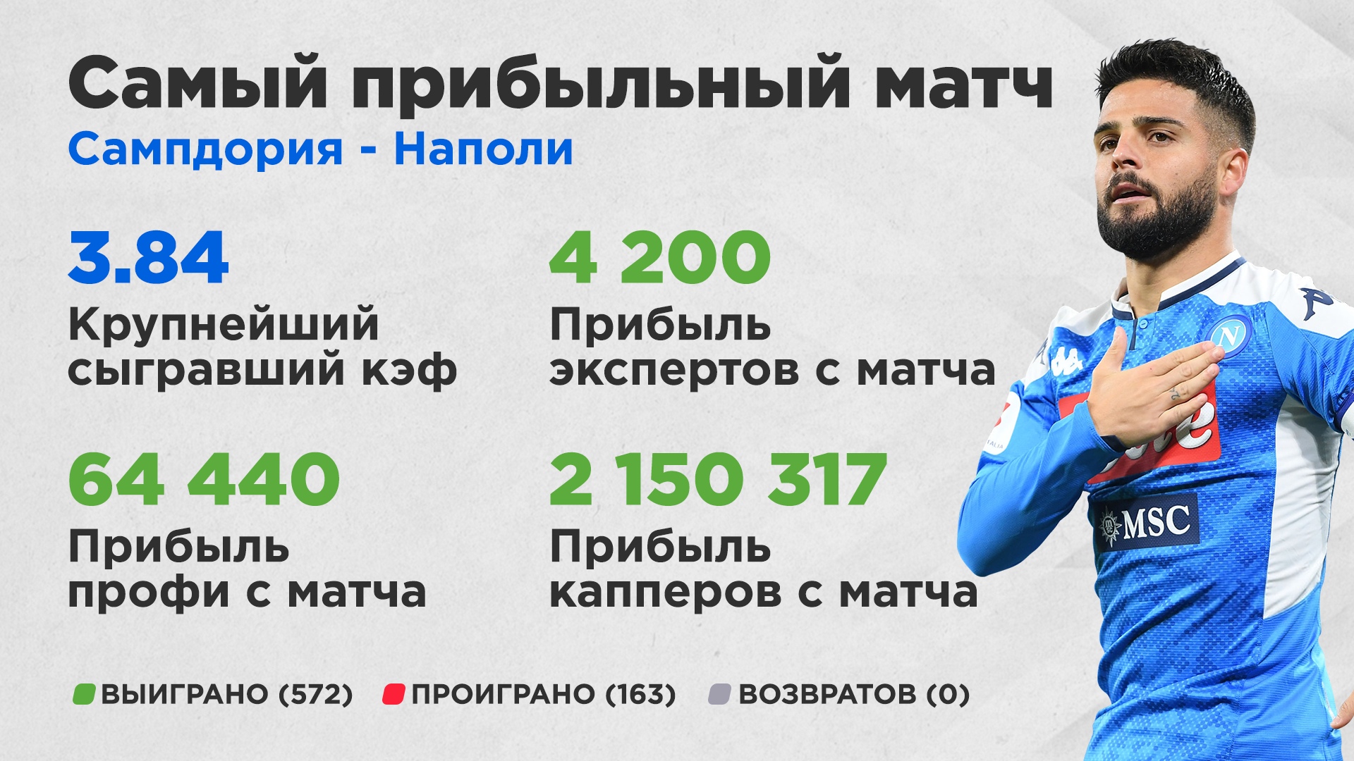 Несмотря на то, что поединки Кубка Париматч Премьер захватили внимание большого числа капперов, добраться до вершины прибыльности они не сумели. В наш рейтинг врывается очередной матч итальянской Серии А, собравший довольно солидную цифру прогнозов (735), а вдобавок и внушительную прибыль в размере 2 150 317 рублей.