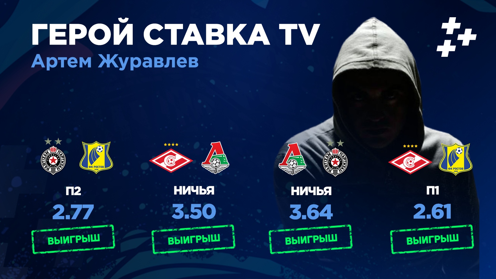 Артем Журавлев вышел на второе место в конкурсе, а все благодаря коэффициентам, которые ему удалось выбить. Две ничьи, а также победа и поражение "Ростова" были предсказаны с точностью атомных часов. Возможно, ключевую роль в этом деле сыграл опыт нашего героя, ведь по его собственным словам, он шел к нынешнему уровню на протяжении семи лет. Кстати, общая прибыль по итогам февраля говорит о больших шансах увидеть Артема в списке счастливчиков в конце месяца. Пока вы добавляете его в число своих подписок на сайте, мы желаем ему удачи и больших побед в рамках проекта СТАВКА TV!