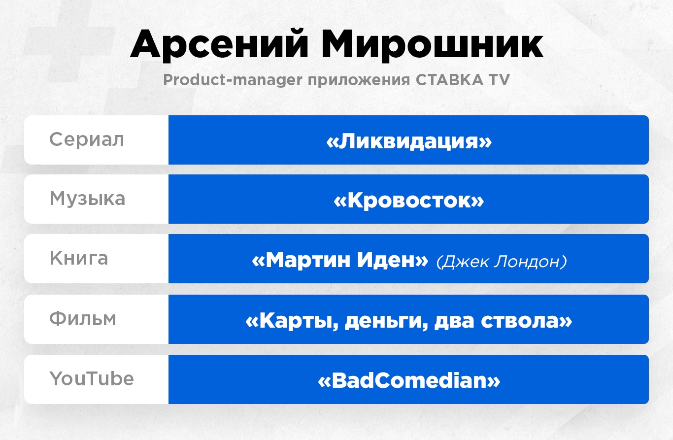 - Арсений Мирошник, Product-manager приложения СТАВКА TV