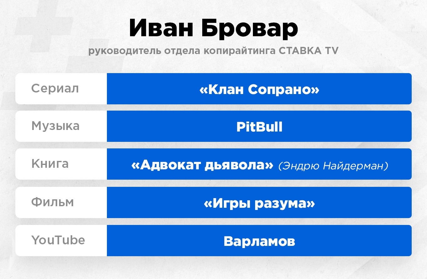 - Иван Бровар, руководитель отдела копирайтинга СТАВКА TV