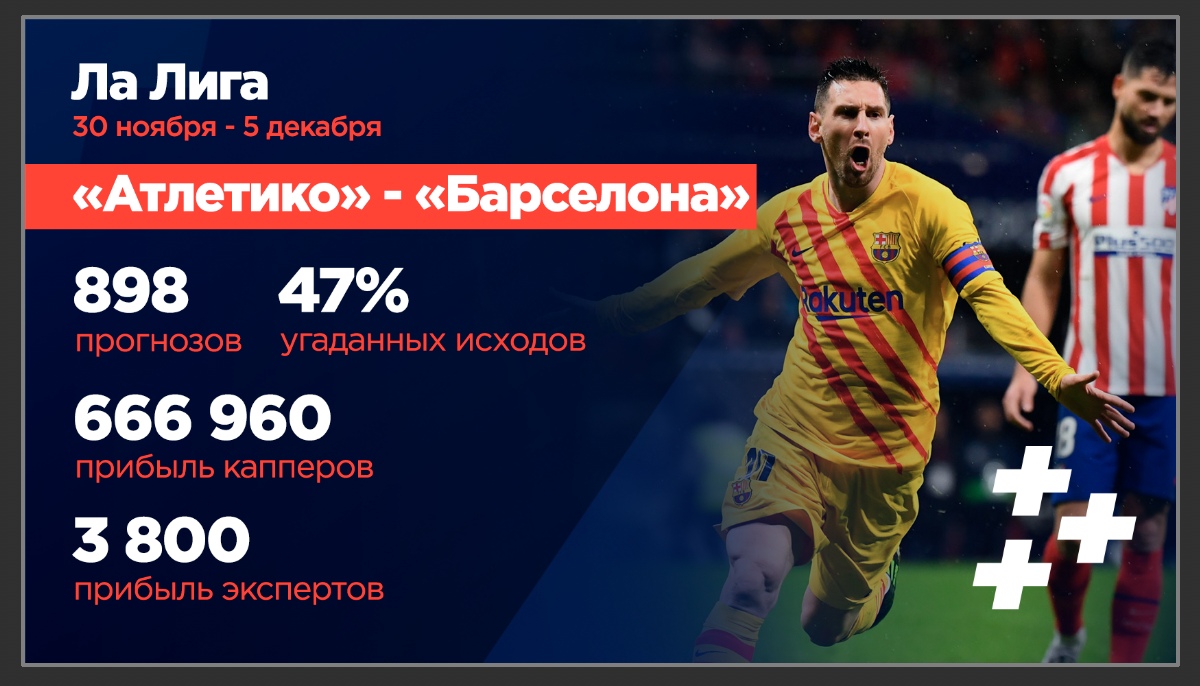 Именно матч между "Атлетико" и "Барселоной" удерживал абсолютный топ по количеству прогнозов и прибыли до мидуика в АПЛ. Интересно, что большинство капперов проекта СТАВКА TV решило не придумывать велосипед, просто зарядив на победу каталонской команды. Понимаете, каков был риск? "Атлетико" провел хороший первый тайм, да и в целом оставил приятное впечатление.