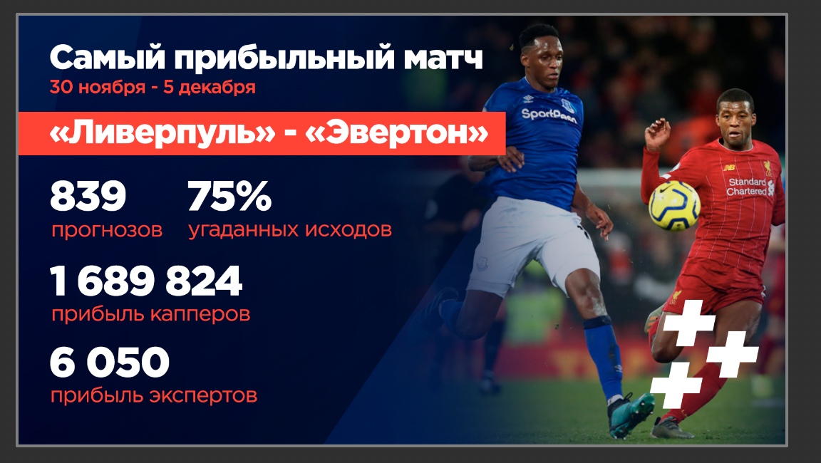 Интересно, что в предыдущих трех встречах между этими командами был забит лишь один гол, но капперы поверили в возможность серьезного перевеса в игре в пользу ребят Юргена Клоппа. Они были абсолютно правы и получили за это достойное вознаграждение в размере 1 689 824 рублей. Только 25% ставок оказались проигрышными, а большинство из них — это отчаянная попытка сорвать большой куш на низких шансах "Эвертона".