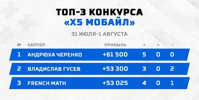 А вот победа в конкурсе Андрюхи Черенко вопросов вызывать не может. Этот каппер искусно разобрался со всеми пятью матчами и стал новым чемпионом "Х5 Мобайл"! Он выбрал для себя менее рискованную стратегию и лишь один раз перешагнул за отметку 3.00 – произошло это в матче между "Арсеналом" и "Челси". Упорная борьба, игра кость в кость и победа "канониров", точно по словам мастера. Турнир добавил в копилку Андрея 61 500 рублей чистой прибыли, а его средний коэффициент составил 2.64, что является третьим самым низким результатом в истории конкурса. Наглядный пример того, что и менее рискованные ходы в рамках "Х5″ могут принести успех. Наши поздравления!