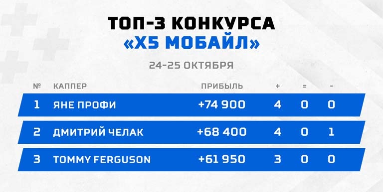 Возвращаемся к тем, кто оказался гораздо более успешен в рамках "Х5 Мобайл", и здесь у нас есть победный дубль. Достижение профи с ником "яНЕ ПРОФИ" (интересное сочетание, правда?) не является уникальным, но это только третий случай в истории конкурса, когда одному участнику удается одержать две победы. 74 900 чистыми за четыре точных прогноза, заявочка на хет-трик, который пока не покорился никому, а также возвращение победы в лагерь профессионалов. Все это, а также 5 000 рублей сверху, достается новому чемпиону "Х5 Мобайл". Поздравляем!