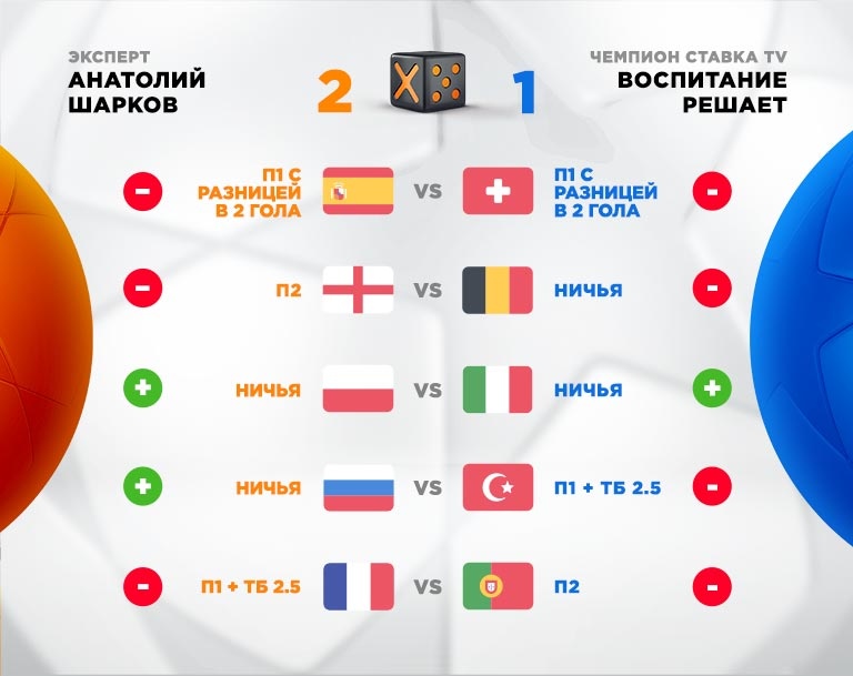 От слов благодарности переходим к баталиям, и сейчас о традиционной битве между экспертом и победителем прошлого выпуска. Каппер "Воспитание решает" столкнулся в очном противостоянии с Анатолием Шарковым по оригинальным правилам акции X5. Оба участника баттла стреляли в этот раз не лучшим образом, но две точно спрогнозированные Анатолием ничьи в матчах Польша – Италия и Россия – Турция позволили ему одержать победу над каппером СТАВКА TV со счетом 2-1. Воспитание решает удостаивается нашей похвалы, но бонусы испаряются. Увы.