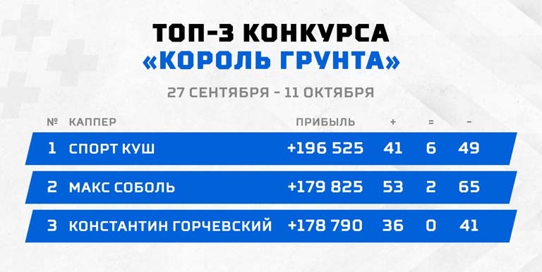 Друзья, два конкурса отстрелялись, но другие все еще в деле. Подкатывает к своему финишу основной турнир "Просто царь" с призовым фондом 75 000 рублей, самое время сделать решающие ходы и залететь в призы. Не стоит забывать, что 15 октября будут приняты последние прогнозы на очередной конкурс "Шайбу", здесь тоже есть еще время, чтобы преуспеть.