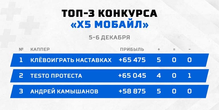 Следом за “Х5 Мобайл” завершится и очередной “Заряжен на РПЛ”. Там борьба еще продолжается и на финише капперов ждет встреча “Сочи” и “Ахмата”. Оставляйте свои прогнозы, а затем готовьтесь к старту “Евротура”. Это последний выпуск еврокубкового конкурса в этом году – Лига чемпионов и Лига Европы уходят на перерыв до середины февраля.