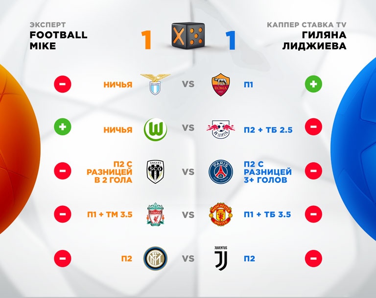 Очередные выходные позади, очередной конкурс "Х5 Мобайл" уходит в архив. К счастью, на этот раз ни один из матчей не был отменен по причине ковида, снегопада или каких-то других форс-мажоров, и ведь посмотреть было на что. Неплохое содержание игры между "Ливерпулем" и "Манчестером", но нули на табло; тотальное доминирование "Лацио" в римском дерби; минимальная победа ПСЖ над "Анже", повергшая всех любителей минусовых фор в шок; продолжение неудачной полосы для "РБ Лейпциг" и, наконец, урок футбола от Антонио Конте своему ученику — великому Андреа Пирло. Содержательно? Давайте смотреть, кто справился с этой задачкой лучше всех.