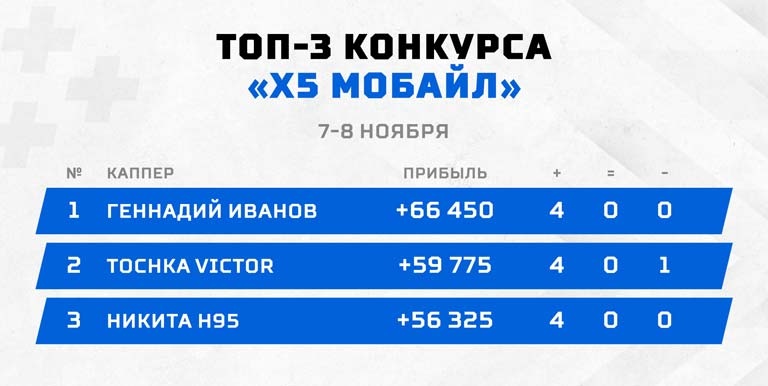 Скоро Геннадию предстоит пройти испытание с экспертом. В традиционном сражении по оригинальным правилам акции "Х5″ от Winline он заменит Савелия Залозного, который противостоял на выходных хоккейному эксперту. Артем Shark-Bet оказался нашему капперу не по зубам, они синхронно ошибались и побеждали, выдав на выходе боевую ничью со счетом (2-2). Это означает, что к победе в 19-м выпуске "Х5 Мобайл" Савелий Залозный добавит еще 2 500 рублей бонусом.