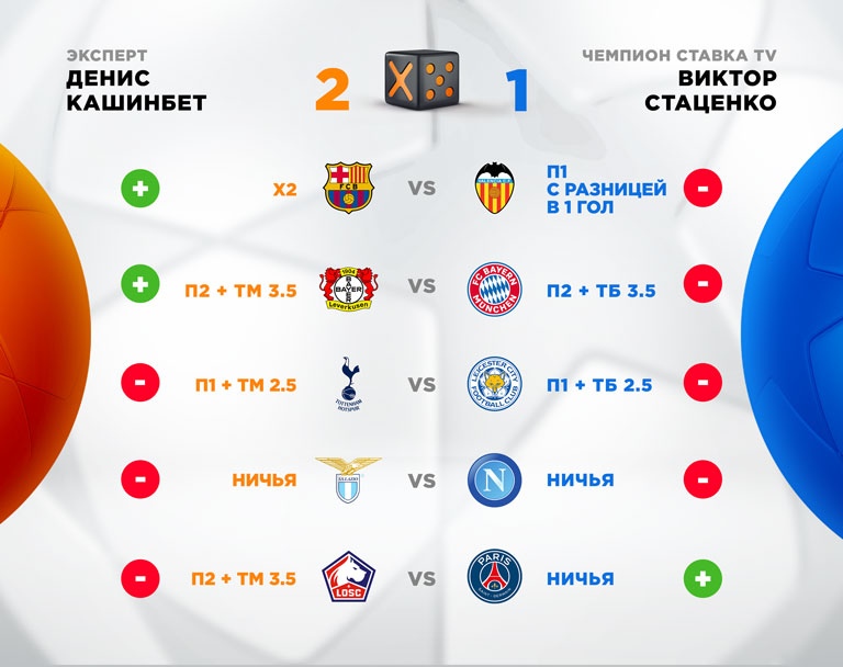 И здесь эксперт начал с двух точных попаданий в матчах "Барселона" – "Валенсия" и "Байер" – "Бавария". Отыграть такой гандикап Виктору было крайне сложно, а свое единственное очко он подобрал в матче "Лилль" – "Лион". Победа Дениса, но Виктор Стаценко все равно нереально крут, и вы скоро узнаете это.