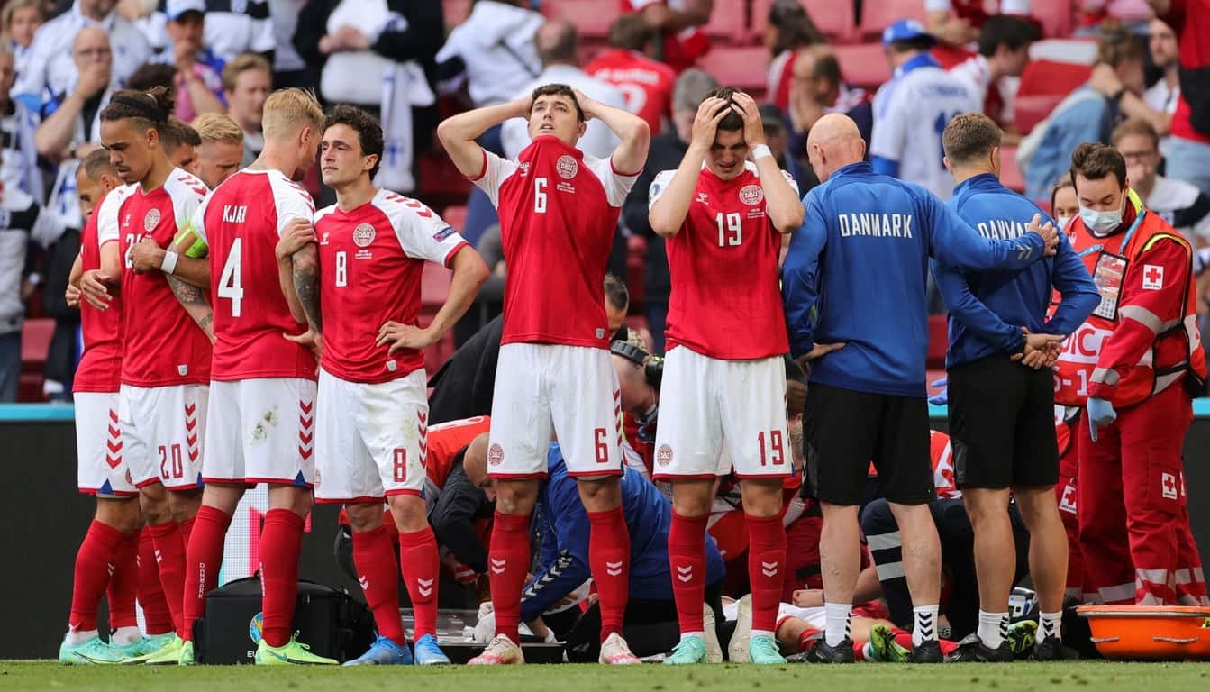 12 июня 2021-го года в матче первого тура Евро Дания – Финляндия, у Кристиана Эриксена произошла остановка сердца, после чего он потерял сознание. Помощь футболисту оказывали в течение 9 минут.