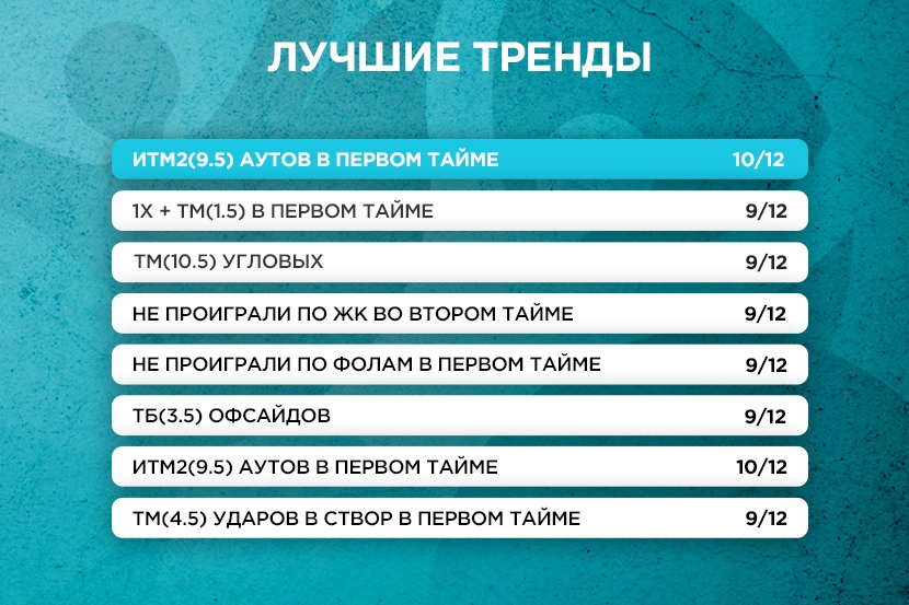 ИТМ2(9.5) аутов в первом тайме - 10/12