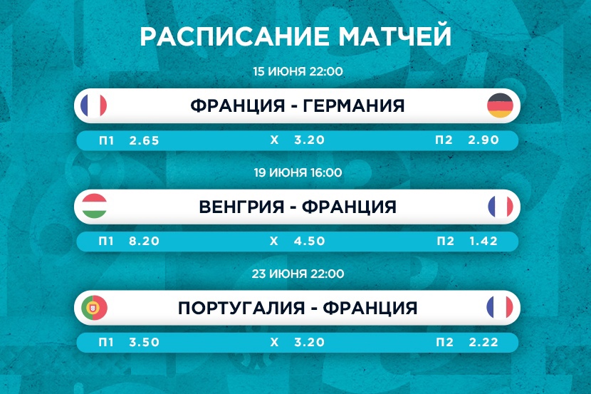 На чемпионате Европы сборная Франции попала в группу F, где ее соперниками выступят команды Венгрии, Португалии и Германии.