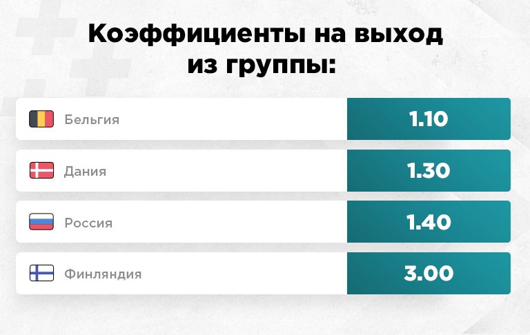 Бельгийцы до неприличия просто выиграли отборочную группу, набрав максимальные 30 очков и забронировав путевку на турнир раньше всех — за три тура до финиша. Считаем их потенциальные очки: три в матче с Финляндией, еще три — с Россией (в отборе бельгийцы дважды нас деклассировали со счетом 3:1 и 4:1) и как минимум одно с Данией. Этого вполне хватит для первой строчки.