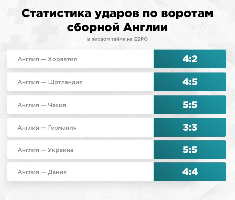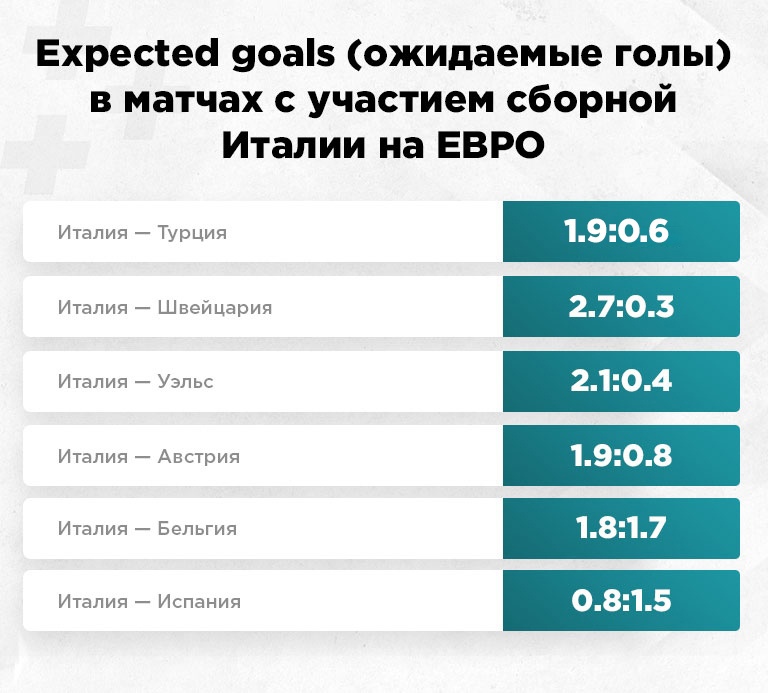 У англичан тоже хорошая статистика и плюсовая разница, но с фильтром по сильным соперникам британцы чаще проигрывают по этому показателю, чем выигрывают, и разница -0.1. На Евро из подобных соперников, с плюсовой разницей офсайдов, у них были немцы и хорваты. В обоих матчах по офсайдам ничья, но итальянцы примерно в два раза более результативные в этом плане, чем те соперники.