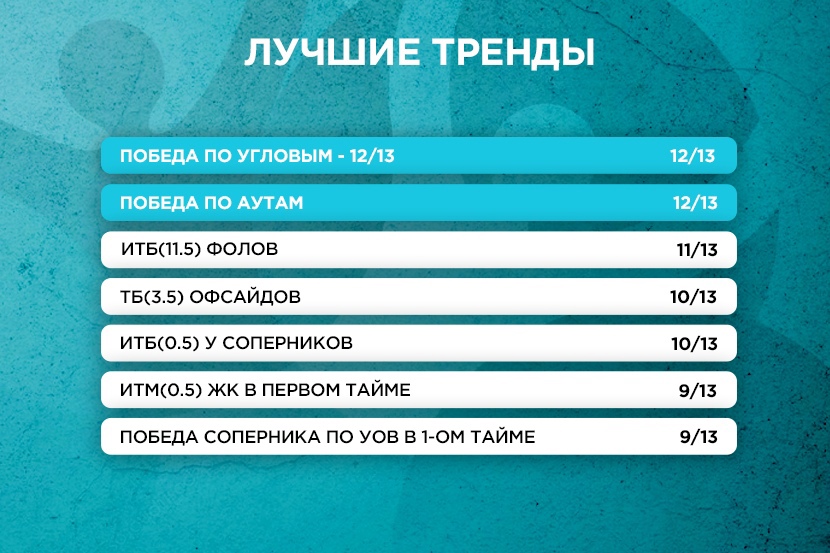 Учитываем все официальные игры с 2019-го года, кроме матчей против слабых соперников: Гибралтара, Латвии и Беларуси. Выделим по одной интересной особенности/тренду в каждом рынке: голы, угловые, карточки, фолы, офсайды, ауты и удары.
