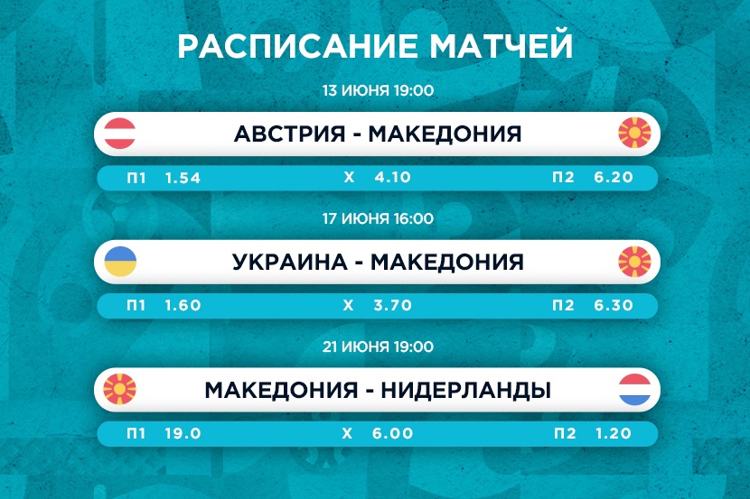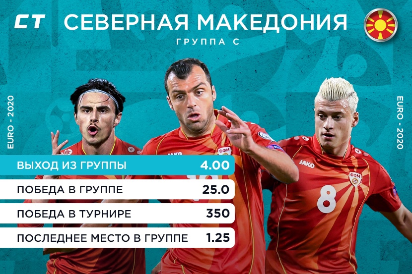 Букмекеры совсем не верят в сборную Северной Македонии и оценивают ее шансы на выход из группы, как минимальные. Зарядить на этот исход вам предлагается с коэффициентом 4.