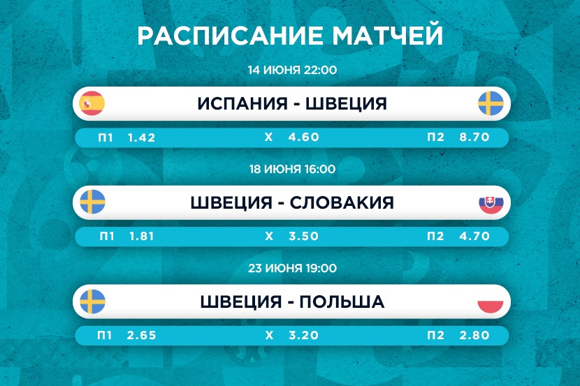 Шансы скандинавов выйти из группы оцениваются в 1.55 (гораздо ниже, чем у испанцев, чуть ниже, чем у поляков, и сильно выше словаков). Ставка на Швецию как на победителя группы оценивается в 8.00.