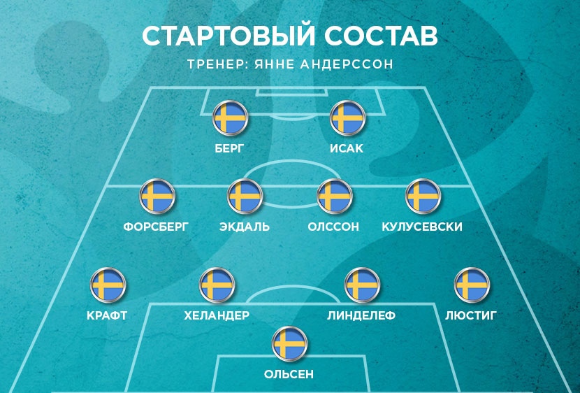 В составе "желто-синих" есть футболисты, хорошо знакомые российскому зрителю. Виктор Классон, Кристоффер Ольссон и Маркус Берг представляют "Краснодар". Кроме того, есть еще спартаковец Джордан Ларссон, но за национальную сборную он играет крайне редко: всего 5 матчей с 2018-го года.