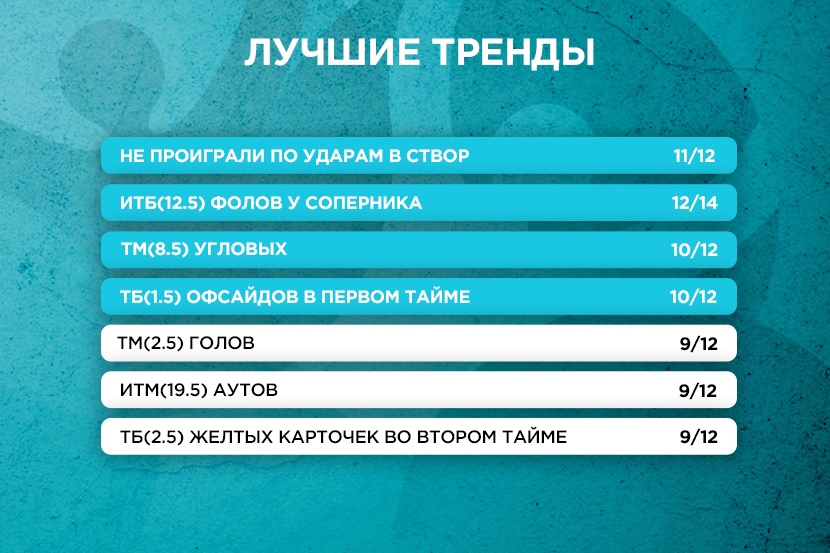 ТБ(1.5) офсайдов в первом тайме - 10/12